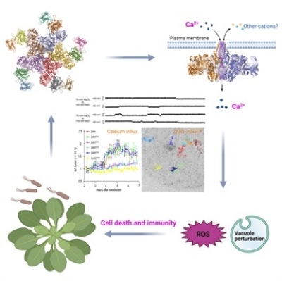 作物病虫害是农业生产的重要制约因素,威胁我国食品安全。数目众多的抗病蛋白通过感知病原菌的存在,迅速启动防卫反应、保护植物免受侵害,是农作物稳产高产的重要保障。然而,抗病蛋白的关键作用机制多年来一直是困扰植物抗病领域的重大难题。中国科学院遗传与发育生物学研究所研究员周俭民课题组与清华大学研究组前期合作发现,抗病蛋白ZAR1在体外激活后能够组装成一个五聚体的复合物,并命名为抗病小体(Wang et al. Science, 364, pii: eaav5868. 2019;Wang et al. Science, 364, pii: eaav5870. 2019);通过结构生物学分析,暗示ZAR1抗病小体很可能通过在细胞膜上成孔,激活免疫反应和细胞死亡,但尚不清楚ZAR1抗病小体是否真的在植物细胞膜上成孔,以及成孔后如何激活下游防卫反应和细胞死亡。解析这一机制对认识植物免疫系统具有重要理论意义。