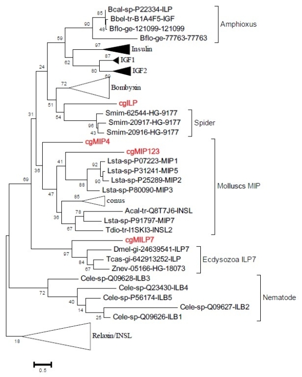 2021年是胰岛素发现100周年,作为研究较深入的生物大分子之一,关于其起源和演化历史还存在很多尚未解决的问题。胰岛素纯化工作的主要参与者James Collip在胰岛素发现之初就开始关注其在不同动物中的存在情况,并于1923年在双壳贝类砂海螂(Mya arenaria)中鉴定到类似胰岛素活性的物质存在。然而,越来越多的研究表明,无脊椎动物和脊椎动物类胰岛素基因无论是在结构还是表达模式方面均存在较大差异。尤其是线虫、果蝇等模式无脊椎动物的基因组特化严重,丢失了Pdx等人类胰岛素基因的关键转录因子。动物类胰岛素基因复杂的演化历史还需进一步阐明。