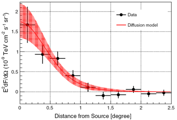 图2.LHAASO源辐射强度随距脉冲星的角距离的变化