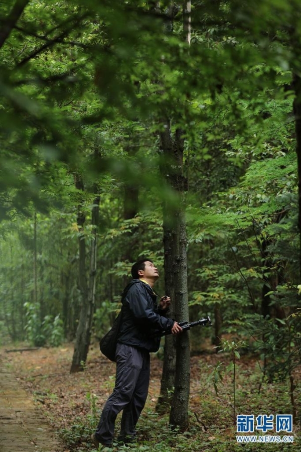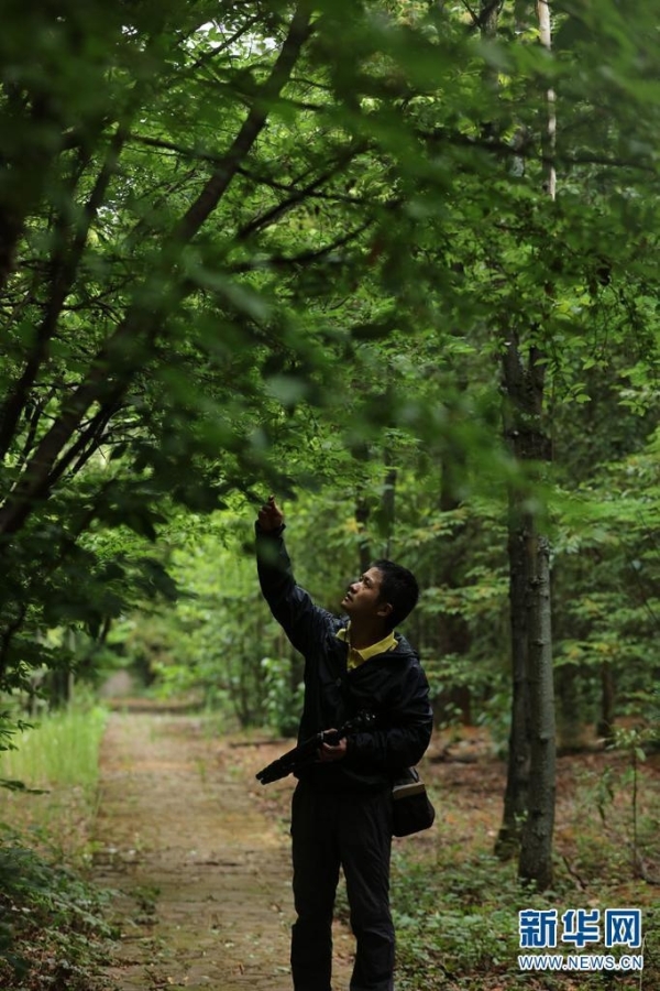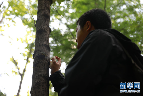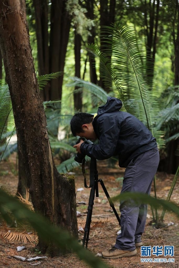 从事苔藓植物标本管理工作11年,马文章参与过80多次野外考察,采集超1.2万号苔藓植物标本。图为马文章在采集苔藓标本前,先拍照留存(6月5日摄)。