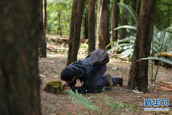 从工作到现在,马文章共参与发表了8个新物种的论文。实际上,新种的发现并不容易,发现过程往往是漫长而曲折的。图为马文章在野外采集时,观察苔藓(6月5日摄)。
