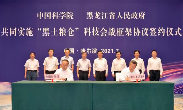 7月9日,中国科学院与黑龙江省人民政府在哈尔滨市举行科技合作座谈会,签署院省《共同实施“黑土粮仓”科技会战框架协议》。中科院院长、党组书记侯建国,黑龙江省委书记、省人大常委会主任张庆伟,黑龙江省委副书记、省长胡昌升出席会议,并见证协议签署。