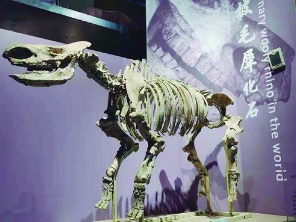 “临夏巨犀”头骨化石在和政古动物化石博物馆展出。