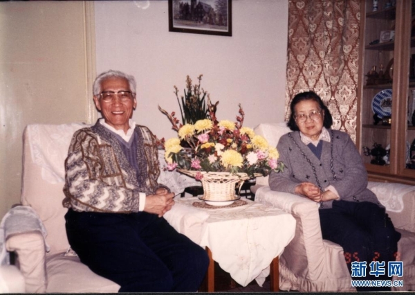 1995年,陆元九与夫人在家中。新华社发(中国航天科技集团供图)