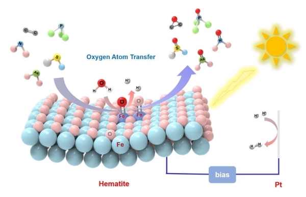 中国科学院化学研究所光化学重点实验室赵进才、陈春城、章宇超研究组发现,赤铁矿(α-Fe2O3)纳米光电催化材料表面可高效高选择性活化水分子,通过非自由基途径将水中的氧原子转移到系列有机和无机反应物上,实现了它们的高选择性氧化,从而为复杂水体中目标污染物的选择性高效去除以及化学品的高价值氧化转化提供了新策略。