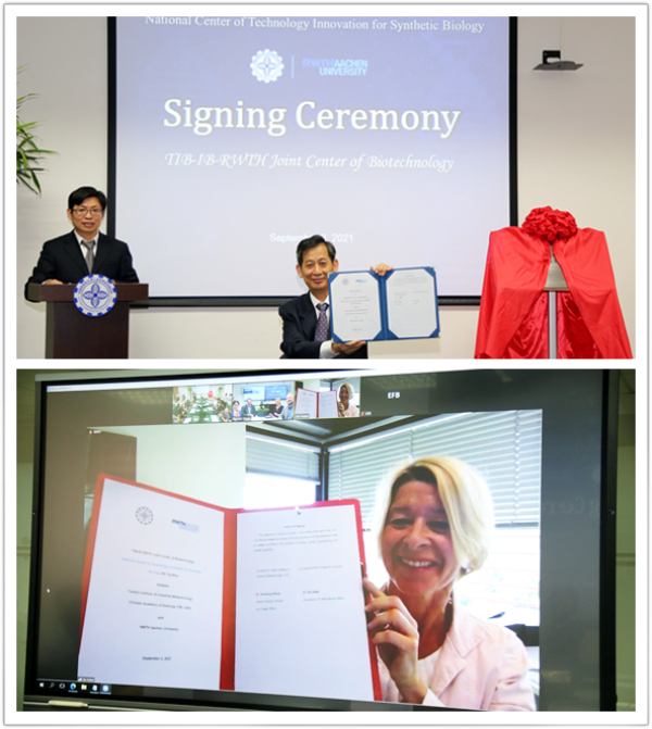 9月3日,中国科学院天津工业生物技术研究所与德国亚琛工业大学生物技术研究所(Institute of Biotechnology, RWTH Aachen University,IB RWTH)签约共建国家合成生物技术创新中心TIB-IB RWTH生物技术联合中心(以下简称“联合中心”),并在第三届亚琛蛋白质工程研讨会上举行签约与揭牌仪式。