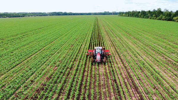在黑龙江友谊农场,种植户进行田间管理 徐宏宇摄