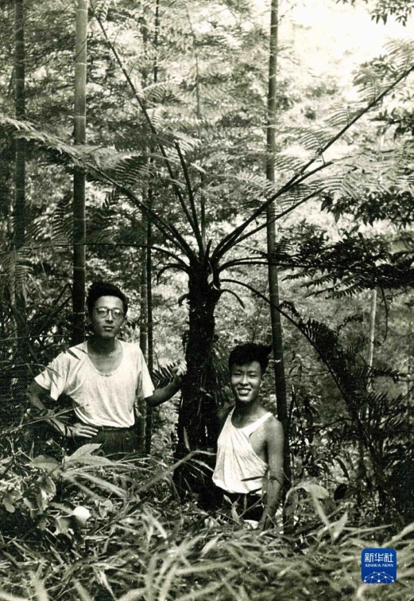 1963年,印开蒲(右)在四川省叙永县开展四川植被调查时留影(资料照片)。新华社发