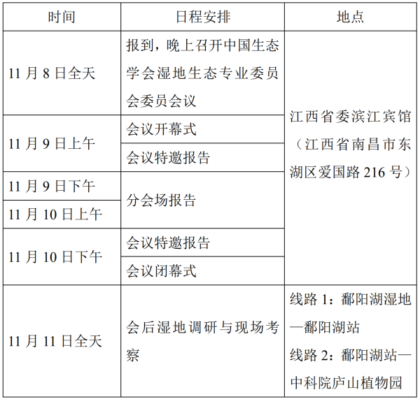 本次会议安排了大会特邀报告、分会专题报告等多种形式的学术交流活动,同时开展与湿地科学研究领域相关的仪器设备、应用软件和文献出版物宣传活动。热烈欢迎广大湿地科学工作者、相关企事业单位积极参会,扩大学术交流,推动我国湿地科学研究发展。