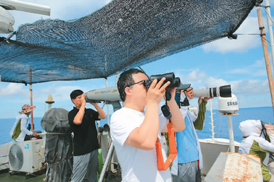 面对这样的“定论”,我与团队并未全盘听信。通过对附近海域众多渔民的走访,我们推定三亚附近海域确有中华白海豚出没。于是,我与团队每两三个月出海一次,寻找中华白海豚的踪迹。虽然多次无功而返,但我们都没有轻易放弃。