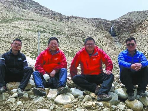 从琼嘉岗锂矿下山的4位科研人员,从左至右分别是施睿哲、秦克章、赵俊兴、何畅通。受访者供图