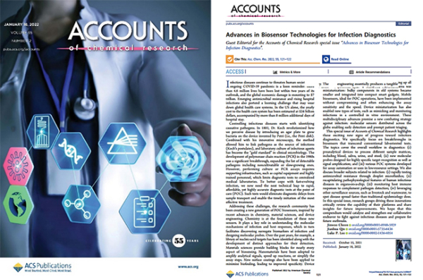 近日,由中国科学院大连化学物理研究所微流控芯片研究组研究员秦建华和美国哈佛大学医学院教授Luke P. Lee等共同主编的学术专刊《用于感染诊断的生物传感器技术进展》(Advances in Biosensor Technologies for Infection Diagnostics)在Accounts of Chemical Research上出版。