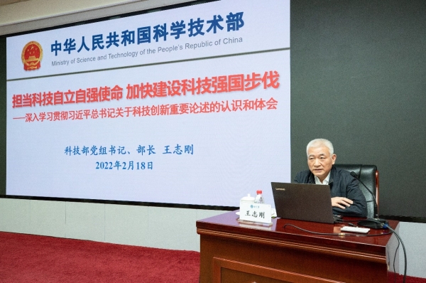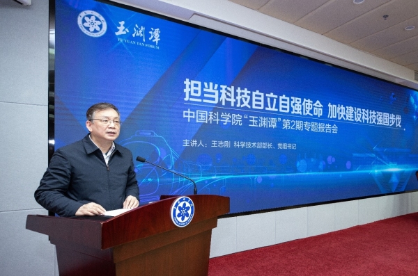 2月18日,中国科学院在京举行“玉渊谭”第二期专题报告会。科技部部长、党组书记王志刚作了题为“担当科技自立自强使命 加快建设科技强国步伐”的专题报告。中科院院长、党组书记侯建国主持。