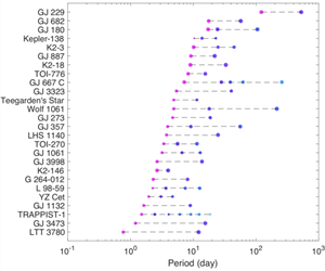 通常有两种理论来解释类地行星的形成,一种理论认为目前观测到的类地行星基本上在当地生成,其轨道与初始轨道几乎相同,即为所谓的原位形成机制。还有一种理论认为,这些行星最初并不是在当前观测的轨道位置,而是由于行星在形成过程中与原行星盘发生角动量交换,从而引起行星发生向内迁移或向外迁移(反向迁移)的过程,即为轨道迁移机制。因此基于不同的原行星盘模型及行星形成理论,可深入探究红矮星附近类地行星的形成演化历史。