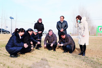 国家小麦产业技术体系首席科学家刘录祥(右四)带领团队查看小麦苗情。中国农科院作物科学研究所供图