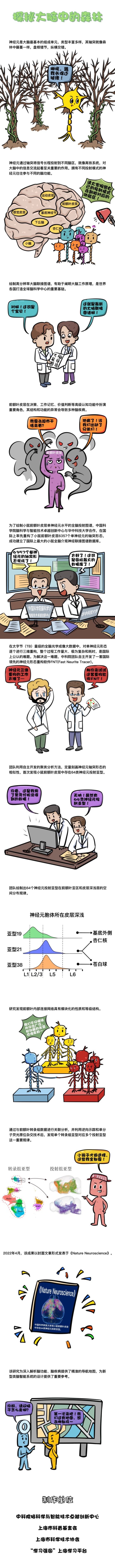 3月31日,Nature Neuroscience以封面文章的形式,在线发表了题为《小鼠前额叶单神经元投射图谱》的研究论文,该研究由中国科学院脑科学与智能技术卓越创新中心(神经科学研究所)、神经科学国家重点实验室、上海脑科学与类脑研究中心严军研究组、徐宁龙研究组,以及华中科技大学苏州脑空间信息研究院、武汉光电国家研究中心龚辉团队合作完成。该研究在国际介观图谱领域率先重构了小鼠前额叶皮层6357个单神经元全脑投射图谱,建立了目前国际上最大的小鼠全脑介观神经联接图谱数据库;首次发现小鼠前额叶皮层中存在64类神经元投射亚型,揭示了其空间分布规律,阐明了前额叶内部模块化的连接网络和等级结构、神经元转录组亚型与投射亚型的对应关系,从而揭示了前额叶皮层内部连接和外部投射的规律,并提出了前额叶皮层可能的工作模型。该研究不仅为深入探究高级认知功能的神经机制奠定了结构基础,而且为探索全脑介观神经联接图谱提供了重要的技术支撑。