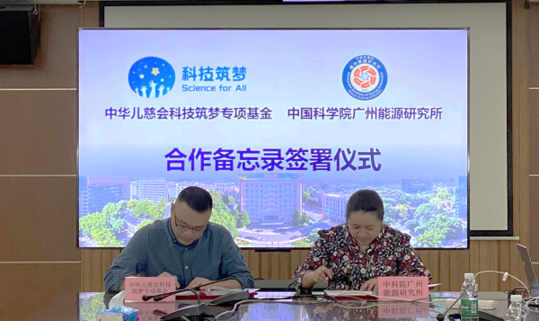 4月8日下午,中国科学院广州能源研究所与中华儿慈会科技筑梦专项基金签署合作备忘录。