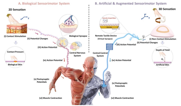 近日,中国科学院深圳先进技术研究院先进集成技术研究所神经工程研究中心与德国马克思-普朗克聚合物研究所有机电子研究团队合作,在《科学进展》(Science Advances)上,发表了题为An artificial remote tactile device with 3D depth-of-field sensation的研究论文。