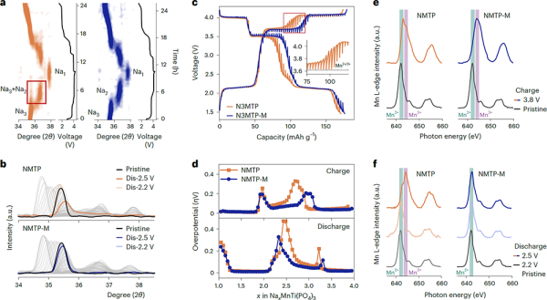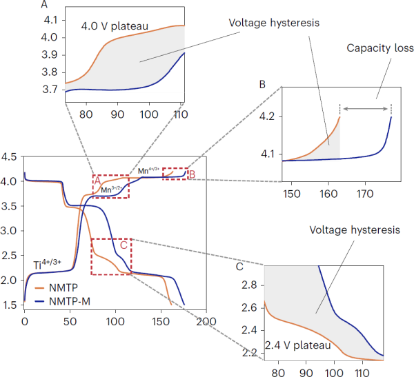 Na3MnTi(PO4)3的电压迟滞和容量损失