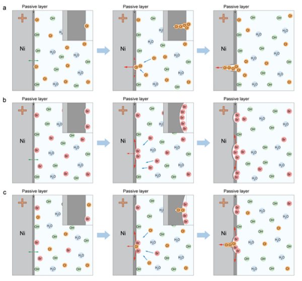 图1. 镍基底在含Cl-和含Br-溶液中的腐蚀过程