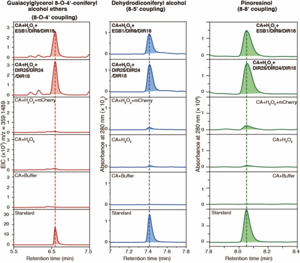 此外,木质素是重要的生物能源物质及固碳物质,但关于木质素单体的聚合过程始终存在争论。一种观点认为木质素的聚合是一个随机自发的过程,不受到蛋白因子的调控,即随机聚合理论;另一种观点则认为这一聚合过程受到引导蛋白的精准调控,但这一观点缺乏严格的遗传学证据支撑。