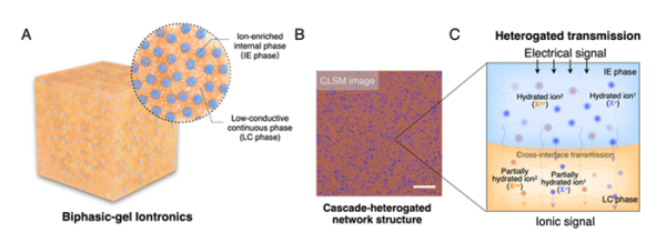 级联异质门控两相凝胶离电材料的结构和跨界面离子传输