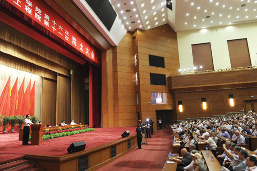 6月11日,中共中央政治局常委、国务院总理温家宝在中国科学院第十六次院士大会和中国工程院第十一次院士大会上为两院院士作报告。新华社记者 饶爱民 摄