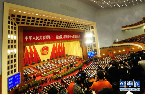 3月5日,第十一届全国人民代表大会第四次会议在北京人民大会堂开幕。(新华社 记者 任勇/摄)