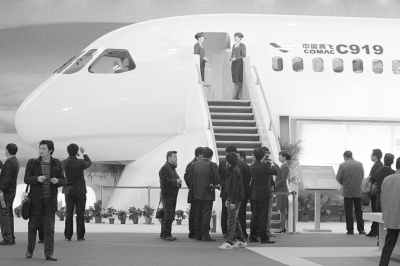 “十一五”国家重大科技成就展上,参观者在体验中国商飞C919大型客机。王华/CFP