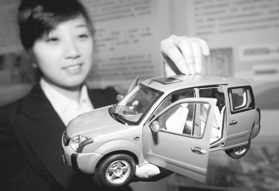 在北京青年创新创业博览会上,礼仪小姐展示电动车模型。晓晨/CFP