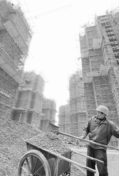 3月2日,工人在福州市保障性安居工程重点项目远东丽景工地上劳作。新华社记者 林善传摄