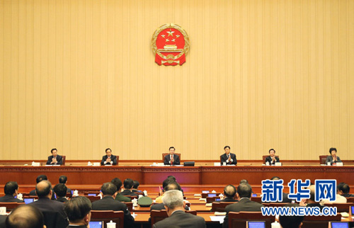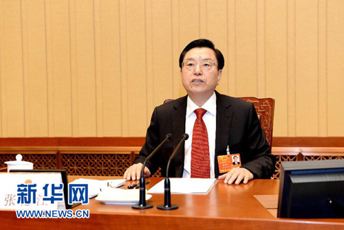 3月4日,十二届全国人大一次会议主席团在北京人民大会堂举行第一次会议。张德江主持会议。 新华社记者 马占成 摄