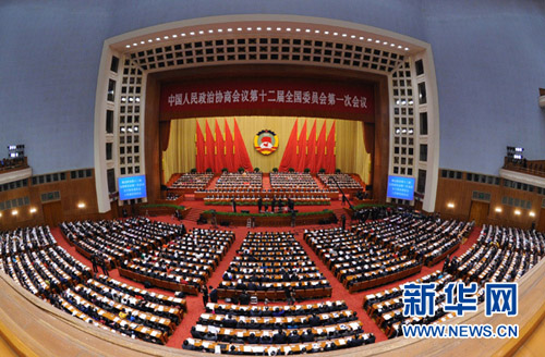 新华社北京3月12日电 中国人民政治协商会议第十二届全国委员会第一次会议,于2013年3月3日至12日在北京举行。
