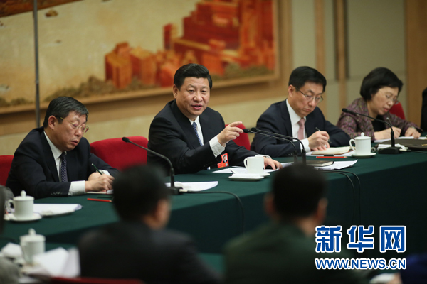 中共中央总书记、中共中央军委主席习近平参加十二届全国人大一次会议上海代表团的审议