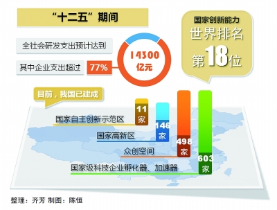 对此,他提出了几点建议:一是国家应该合理布局,实行区域统筹,打造一批中西部地区创新发展的高地;二是建设一个信息共享平台,为“大众创新万众创业”提供技术支持;三是成立相关机构,将创新驱动发展战略细化到项目工程、学科建设等具体方面;四是企业要明确职责,以科技创新为核心,加大自主研发能力,同时要注重节能环保。