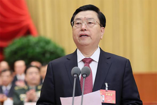 3月5日,第十二届全国人民代表大会第五次会议在北京人民大会堂开幕。张德江主持会议。 新华社记者兰红光摄