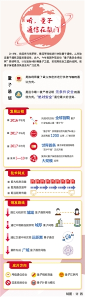 这听上去“玄而又玄”的“黑科技”正影响改变着我们的现在和未来——我国科学家自主研制的量子通信装备,已经为60周年国庆阅兵、党的“十八大”“十九大”、纪念抗战胜利70周年阅兵等国家重要政治活动提供了信息安全保障。中国银监会银行业监管信息报送、中国人民银行人民币跨境收付信息管理系统、中国工商银行网上银行数据异地灾备系统、阿里巴巴商业数据加密传输等等,用的都是量子保密通信技术。
