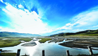 位于青藏高原腹地的三江源地区,是长江、黄河和澜沧江的发源地。图为在青海果洛藏族自治州达日县的黄河大桥上拍摄的达日河风光。资料图片/新华社发