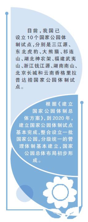 主持人:到目前为止,我国已建立三江源、大熊猫、东北虎豹、普达措等10个国家公园体制试点区,对保护自然资源将起到怎样的作用?初步得到了哪些经验和启示?
