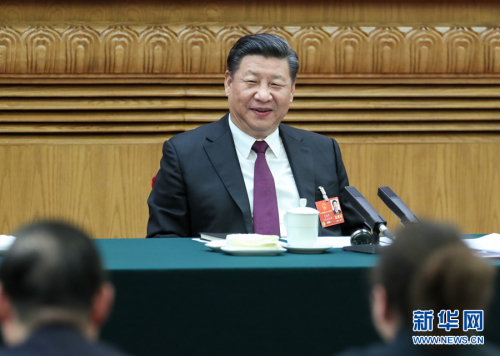 3月5日,中共中央总书记、国家主席、中央军委主席习近平参加十三届全国人大一次会议内蒙古代表团的审议。 新华社记者 鞠鹏 摄