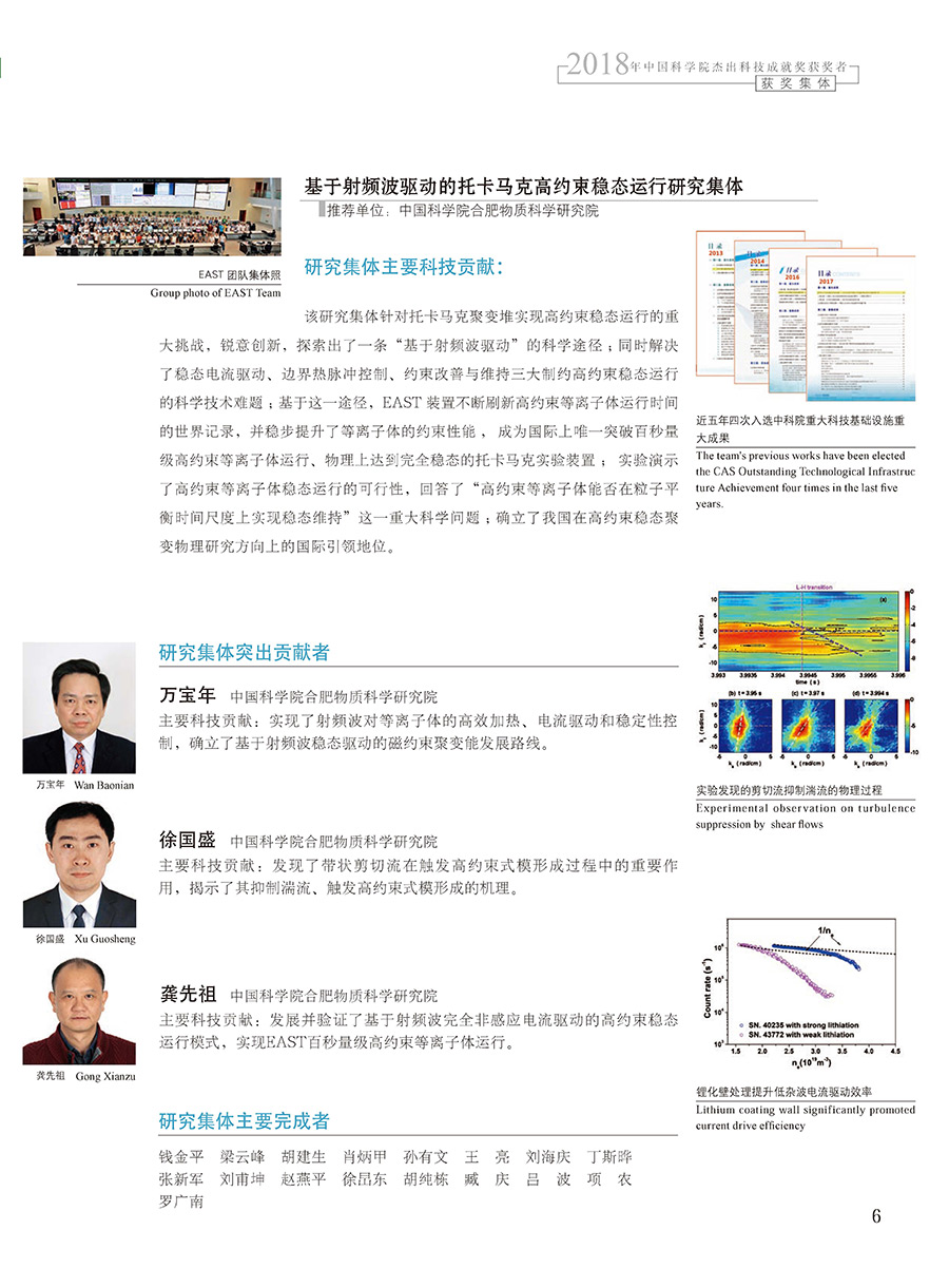 获奖集体:基于射频波驱动的托卡马克高约束稳态运行研究集体
