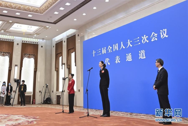 5月22日,第十三届全国人民代表大会第三次会议举行首场“代表通道”采访活动。这是全国人大代表通过网络视频方式接受采访。 新华社记者 刘金海 摄