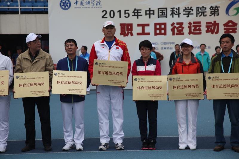 全部比赛项目结束后,运动会组委会副主任、院条财局局长吴建国主持闭幕式。运动会组委会副主任马扬、仲裁委员会主任乔均录分别宣布了优秀组织奖、体育道德风尚奖代表团名单,30个代表团荣获优秀组织奖,31个代表团荣获体育道德风尚奖,李和风等领导分别为荣获优秀组织奖、体育道德风尚奖的代表团颁奖。颁奖结束后在热烈的掌声与悠扬的音乐声中,吴建国宣布中国科学院第六届暨京区第十四届职工田径运动会胜利闭幕,并祝愿中科院乘着这次运动会的东风,凝心聚力,乘势而上,全面推进“率先行动”计划,为实现中华民族伟大复兴的中国梦做出新的更大的贡献!
