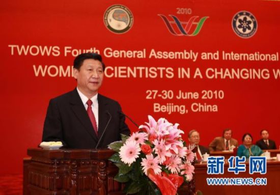 由中国科学院、第三世界妇女科学组织(TWOWS)、发展中国家科学院(TWAS)共同主办的TWOWS第四届大会,27日下午在北京人民大会堂开幕。中国国家副主席习近平出席大会开幕式并致辞。