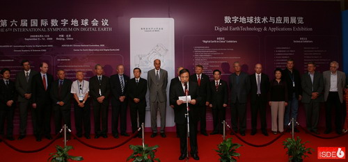 参加展览开幕式的嘉宾有:国际数字地球学会主席、中国科学院院长路甬祥,国际数字地球学会科学委员会主席徐冠华,第六届国际数字地球会议(ISDE6)组委会主席郭华东及国际数字地球学会全体执委。国家遥感中心主任张国成,北京市经济和信息化委员会副主任俞慈声,徕卡测量系统地理信息部亚太总经理Ruediger Wagner,北京视宝(SPOT)卫星图像有限公司经理Hugues PAVIE以及PASCO公司董事长佐藤充等出席开幕式。