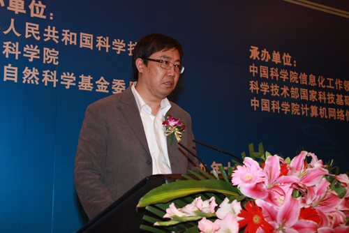 中国科学院副院长江绵恒作了题为“把握时代新特征,推进科研信息化”的主题报告,对人类社会发展的历史进程和信息社会的特征进行了深刻分析,结合中国科学院科研信息化案例,论述了推进科研信息化的重大意义。科学技术部副部长刘燕华、国家自然科学基金委员会副主任何鸣鸿分别做专题报告,结合国家科技基础条件平台建设和支撑自然科学创新发展,就科研信息化的宏观政策、发展战略、重大领域应用和科研模式变革进行了深入阐述。中国地震局地震台网中心、微软亚洲研究院、IBM中国研究院也在会上做演讲报告,介绍了科研信息化的实践和经验。