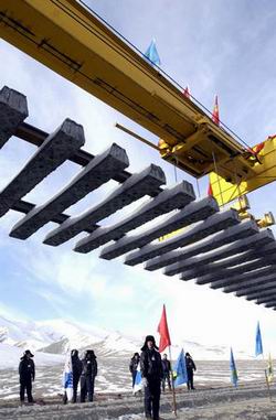 ▲工程概貌:2001年6月29号青藏铁路二期工程全线开工,工程东起格尔木,西至拉萨,全长1118公里,是世界上海拔最高和线路最长的高原铁路。海拔4000米的地段有965公里,最高点唐古拉山口为5072米。青藏铁路二期工程工期为6年。