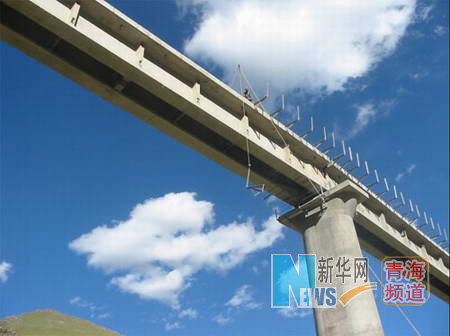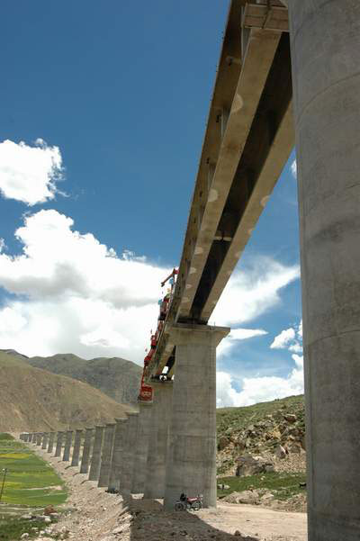 参建员工在对由中铁二局承建的羊八井峡谷地段桥群进行桥梁锚固和安装桥面系。