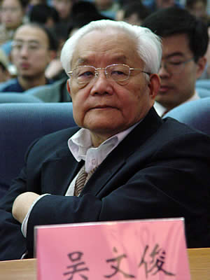 数学家吴文俊 中国科学院数学与系统科学研究院系统科学研究所名誉所长、研究员、中国科学院院士、第三世界科学院院士。1919年5月12日生,1940年毕业于上海交通大学数学系。1949年在法国斯特拉斯堡大学获法国国家科学博士学位。曾任中国数学学会理事长(1985-1987),中国科学院数理学部主任(1992-1994)。