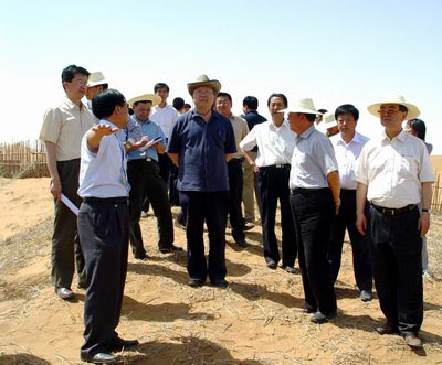 路甬祥在包兰铁路固沙防护体系现场考察